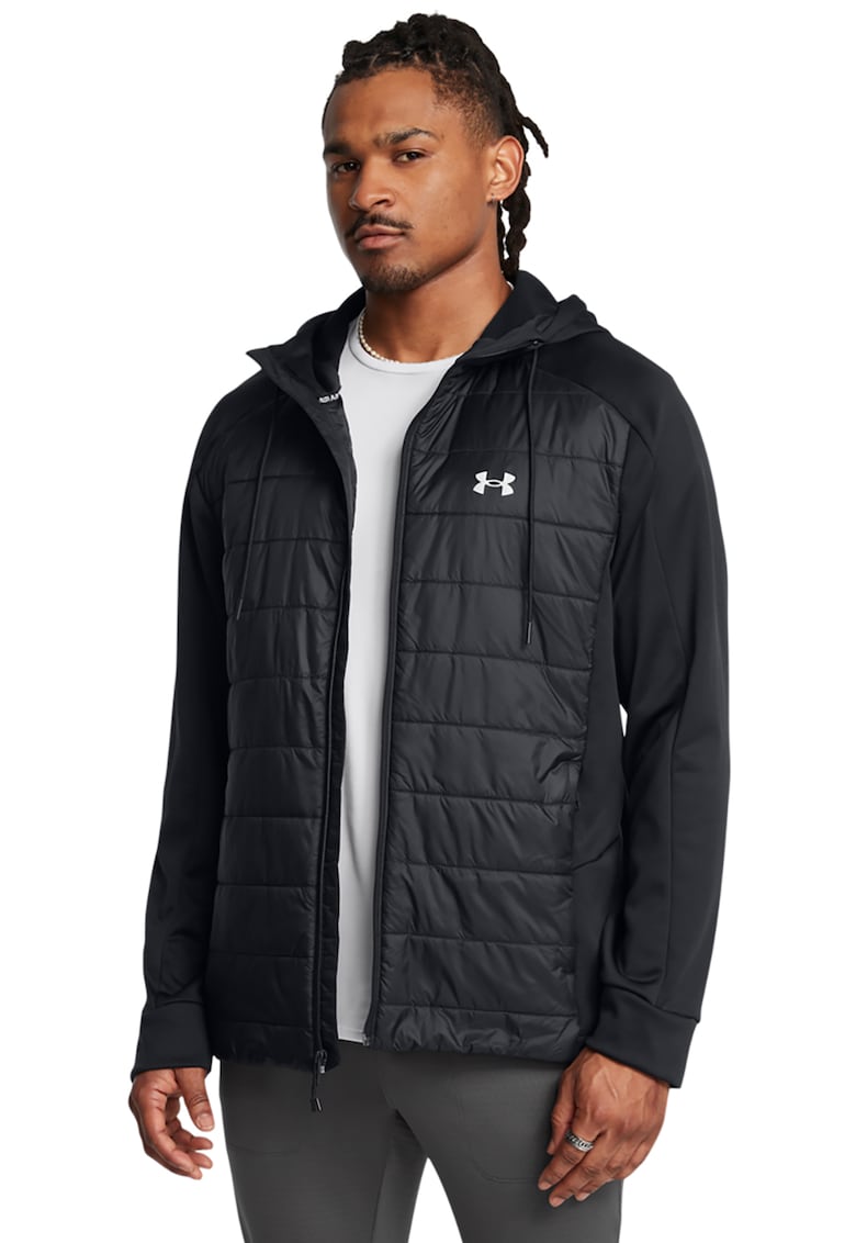 Caracteristici generale Tip produs: jacheta Stil: cu gluga Sport: trekking Culoare: negru Imprimeu: uni Croiala: regular fit Material: poliester Sistem inchidere: fermoar Tehnologie material: ua storm technology Detalii: matlasat