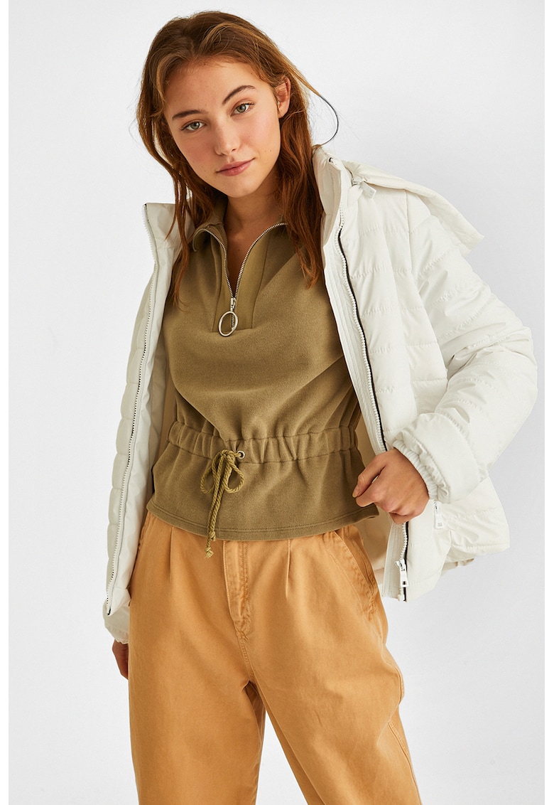 - piele ecologica Croiala: regular fit Gluga: cu gluga Lungime maneca: maneca lunga Buzunare: 2 buzunare cu fermoar Sistem inchidere: fermoar Compozitie Exterior: 55% poliuretan