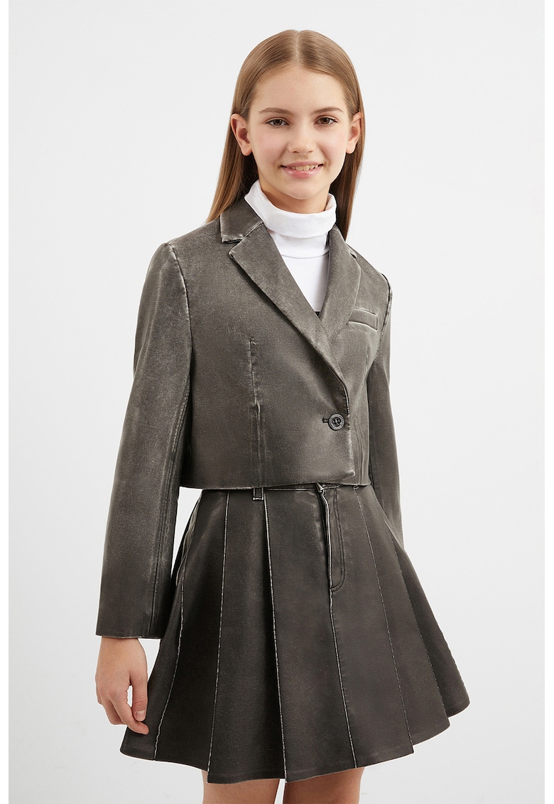 Caracteristici Tip produs: jacheta Culoare: grej Imprimeu: uni Croiala: regular fit Material: poliuretan Lungime: scurta Lungime maneca: maneca lunga Sistem inchidere: nasturi Colectie: primavara