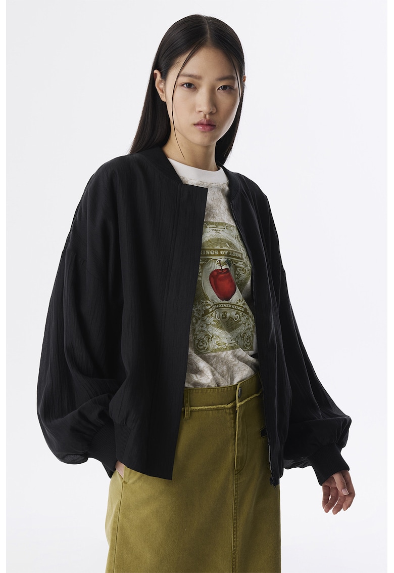 - lyocell Croiala: supradimensionat Guler: baseball Lungime maneca: maneca lunga Buzunare: 2 laterale Sistem inchidere: fermoar Compozitie Exterior: 75% lyocell