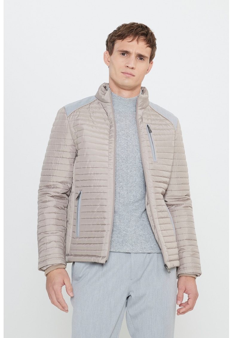 Caracteristici Tip produs: jacheta Culoare: maro taupe Material: poliester Croiala: regular fit Imprimeu: uni Gluga: fara gluga Guler: scurt Lungime maneca: maneca lunga Buzunare: buzunare cu fermoar Sistem inchidere: fermoar Compozitie Exterior: 100% poliester