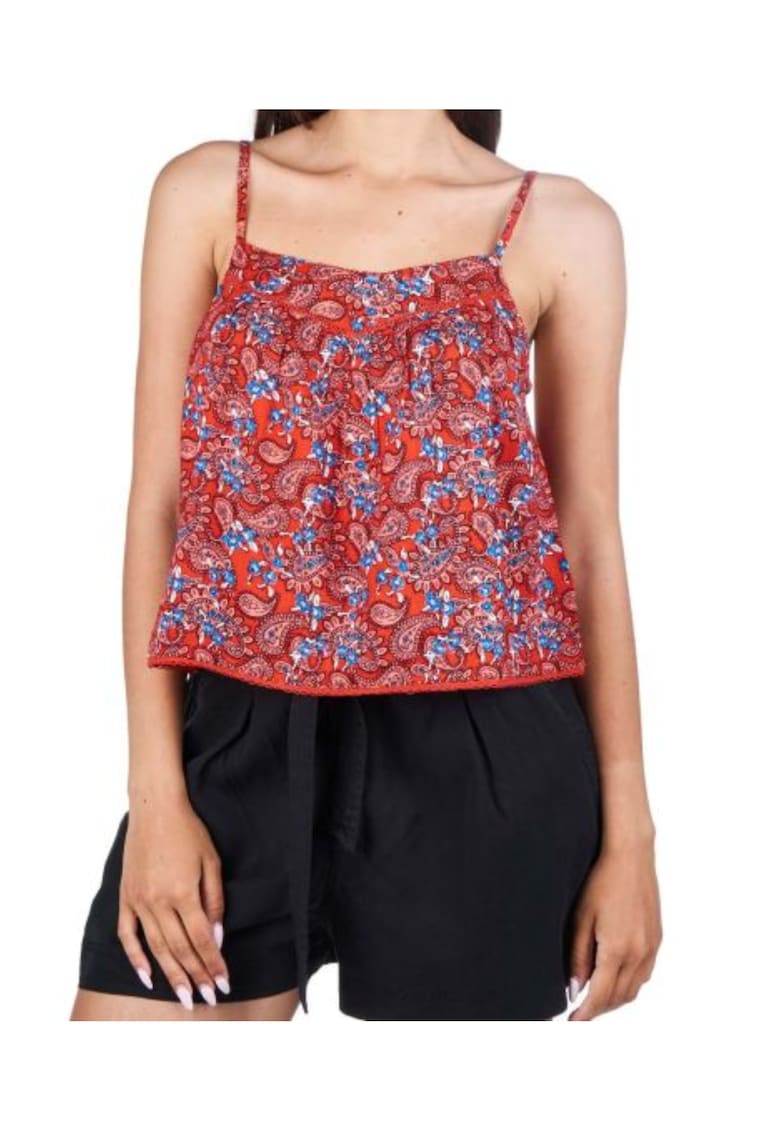 Caracteristici Culoare: vermillion red Imprimeu: paisley Stil: casual Croiala: lejer Sistem inchidere: fara inchidere Material: viscoza Decolteu: patrat Lungime maneca: fara maneca Detalii: bretele ajustabile