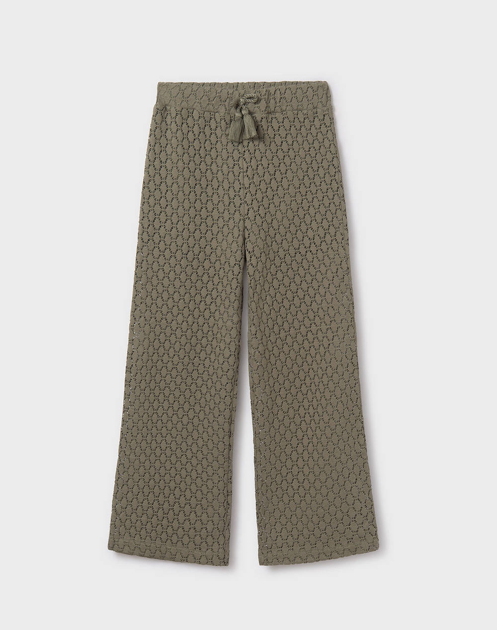 Pantaloni de copii cu modele perforate, talie elastica si cordon de strangere. (Compozitie: 95% Bumbac, 5% Elastan)