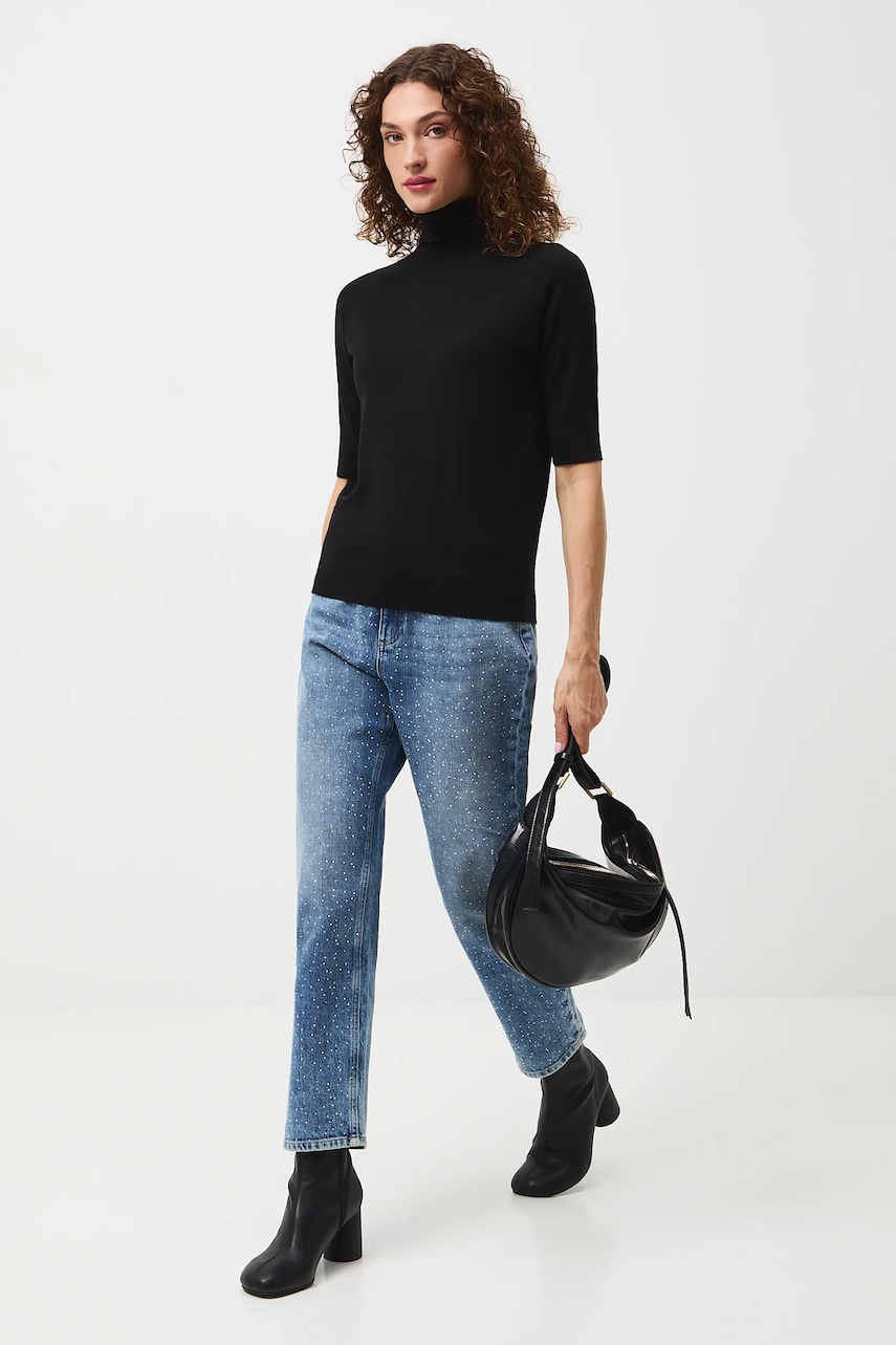 - blugi cu croială mulat cu picior îngust, atât în jurul coapselor, cât și în jurul gleznelor. Ele subliniază linia naturală a figurii, dar nu o strânge