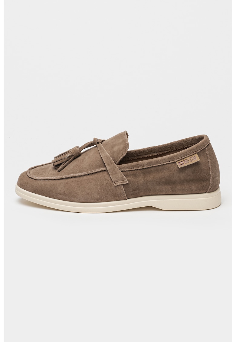 Caracteristici Tip produs: mocasini Culoare: maro taupe Material: piele intoarsa Imprimeu: uni Stil: casual Varf: rotund Tip talpa: plata Detalii: canafi Sistem inchidere: fara inchidere Compozitie Partea superioara: piele intoarsa de vaca Material interior: alte materiale