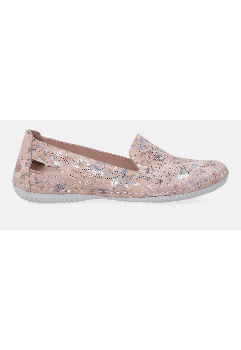 Caracteristici Tip produs: mocasini Culoare: roz Material: piele nabuc Imprimeu: cu model Stil: casual Varf: rotund Tip talpa: demi-wedge Sistem inchidere: fara inchidere Compozitie Partea superioara: piele nabuc Material interior: piele Material talpa: alte materiale