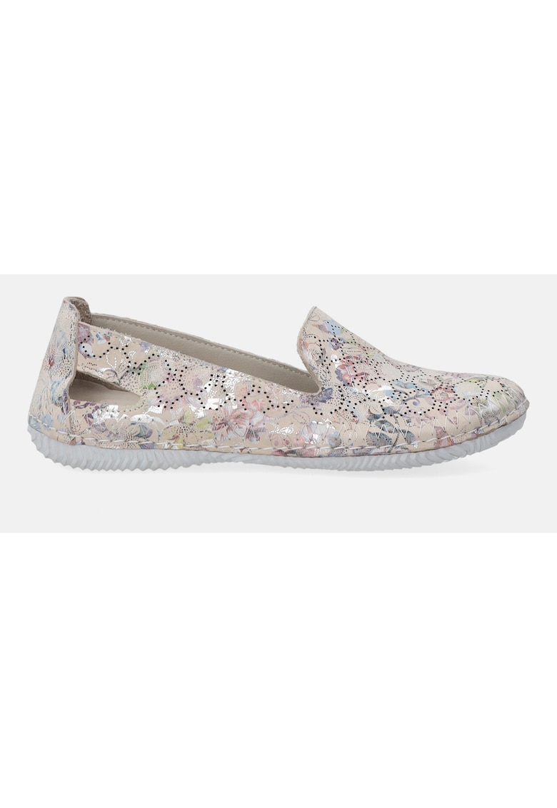 Caracteristici Tip produs: mocasini Culoare: bej Material: piele nabuc Imprimeu: cu model Stil: casual Varf: rotund Tip talpa: demi-wedge Sistem inchidere: fara inchidere Compozitie Partea superioara: piele nabuc Material interior: piele Material talpa: alte materiale