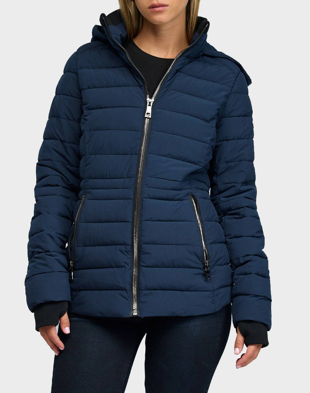 Geaca puffer de dama, in linie normala, cu gluga, buzunare laterale si inchidere cu fermoar. (Compozitie: 100% Poliamida)
