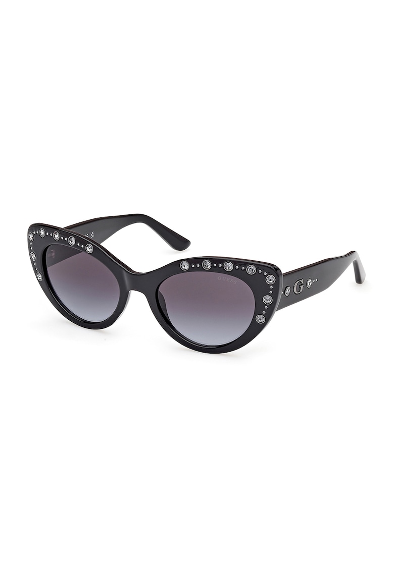 Caracteristici Stil: cat-eye Culoare: negru Culoare lentila: gri Tip lentila: degrade Culoare rama: negru Protectie UV: 3 Detalii: evitati impactul