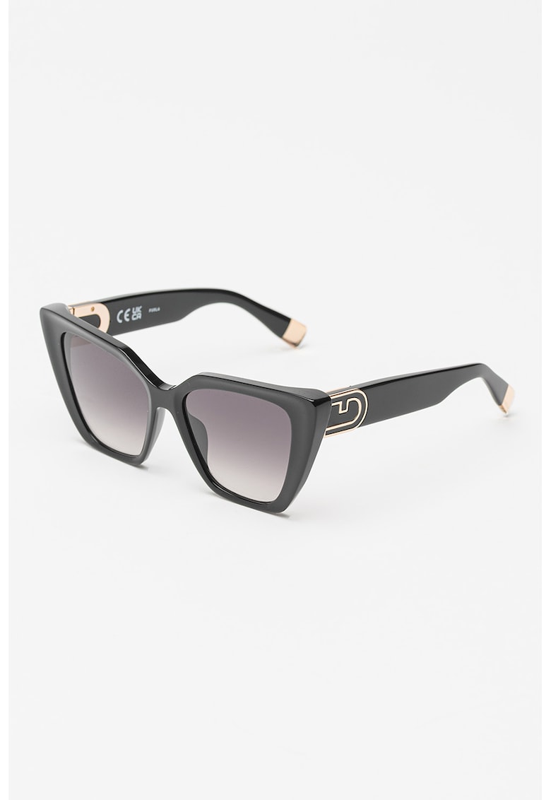 Caracteristici Stil: cat-eye Culoare: negru Culoare lentila: gri Tip lentila: degrade Culoare rama: negru Protectie UV: 3 Detalii: a se evita socurile termice si mecanice