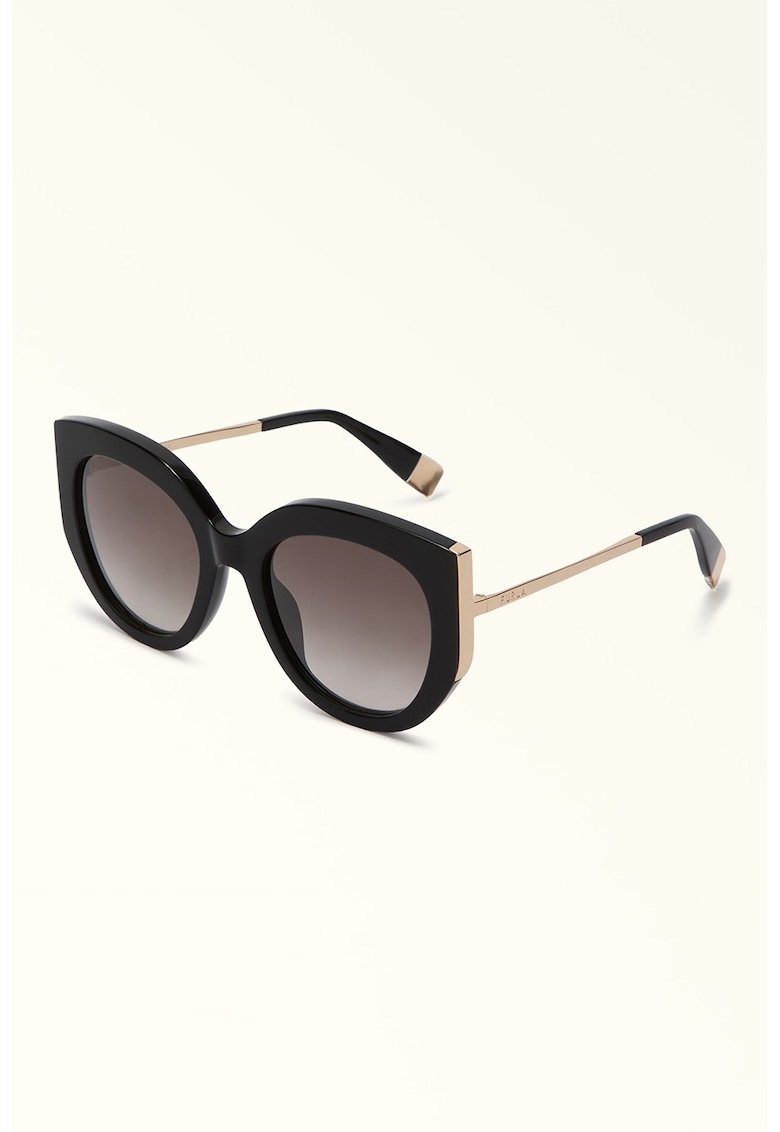 Caracteristici Stil: cat-eye Culoare: negru Culoare lentila: maro deschis Tip lentila: degrade Protectie UV: 3 Detalii: a se evita contactul cu alcool