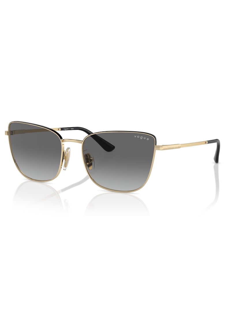 Caracteristici Stil: cat-eye Culoare: auriu Culoare lentila: negru Tip lentila: degrade Culoare rama: auriu Protectie UV: 400 Detalii: a se evita socurile termice si mecanice