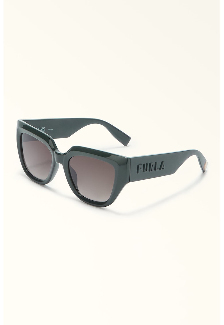 Caracteristici Stil: cat-eye Culoare: verde inchis Culoare lentila: gri in degrade Tip lentila: degrade Protectie UV: 3 Detalii: a se evita socurile termice si mecanice