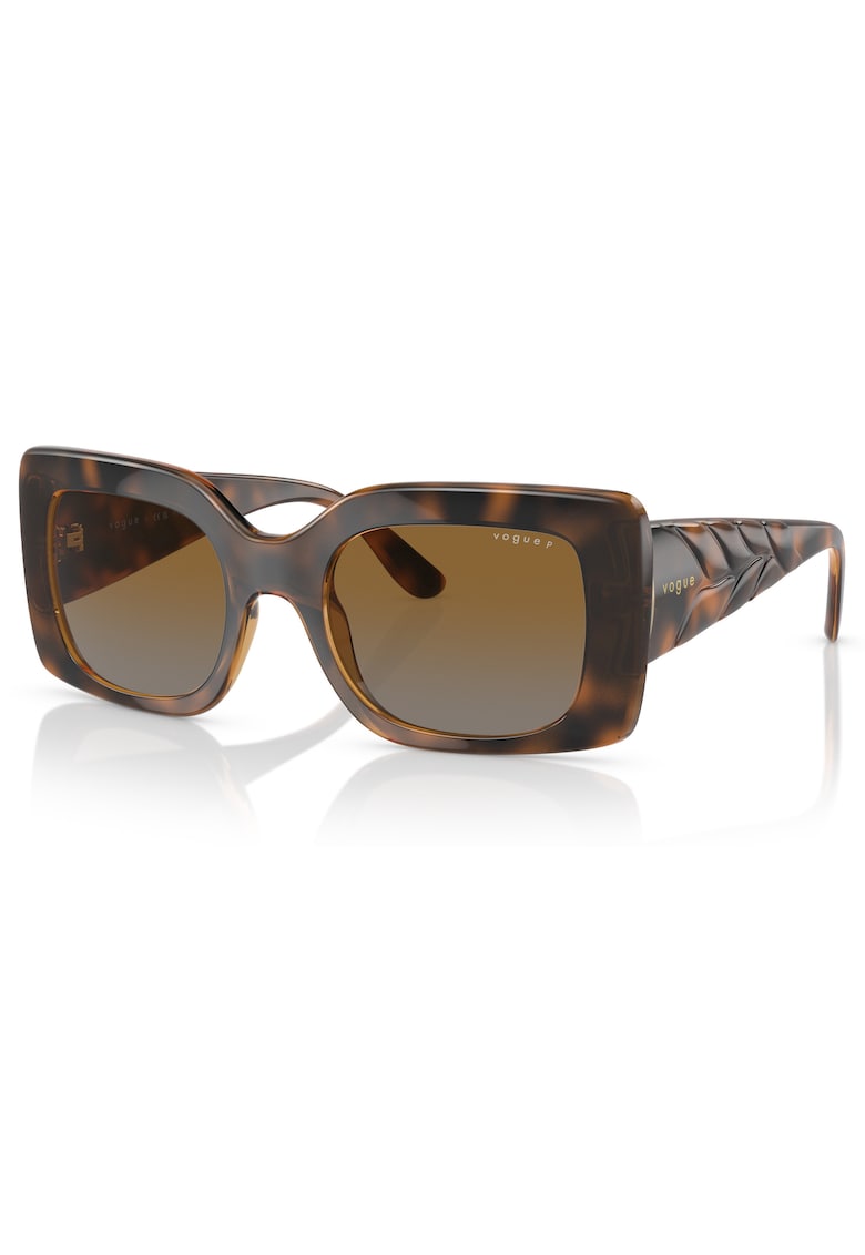 Caracteristici Stil: dreptunghiular Culoare: maro inchis Culoare lentila: maro Tip lentila: degrade Culoare rama: rosu caramiziu Protectie UV: 400 Detalii: a se evita socurile termice si mecanice
