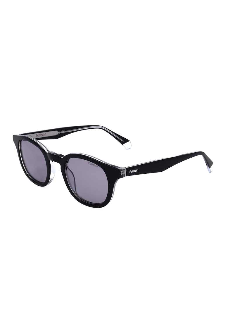 Caracteristici Stil: pantos Culoare: negru Culoare lentila: lila prafuit Tip lentila: polarizata Culoare rama: negru Protectie UV: 2 Compozitie Material rama: acetat Material lentile: triacetat Dimensiuni Latime lentila: 48 mm Marime punte nazala: 24 mm Lungime brat: 150 mm