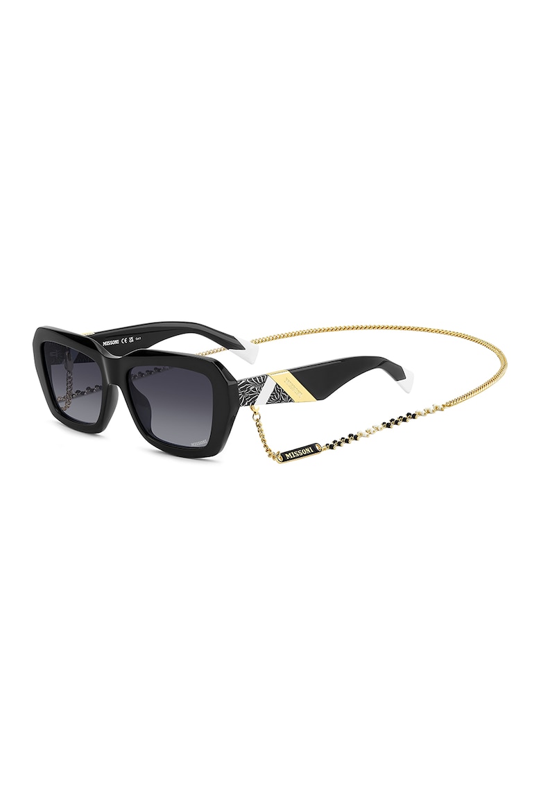 - negru Culoare lentila: negru Tip lentila: degrade Protectie UV: 400 Compozitie Material rama: acetat Material lentile: policarbonat Dimensiuni Latime lentila: 55 mm Marime punte nazala: 17 mm Lungime brat: 140 mm