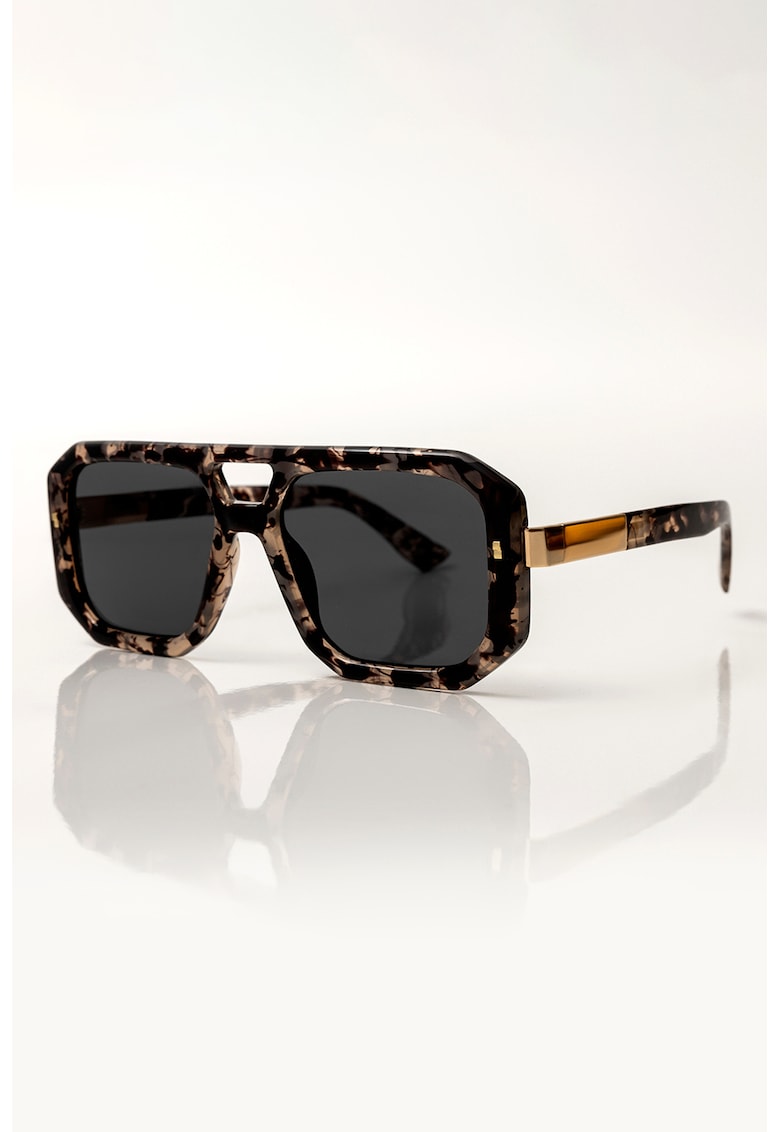 Caracteristici Stil: square Culoare: maro Culoare lentila: negru Tip lentila: culoare uniforma Protectie UV: 400 Detalii: a se evita contactul cu alcool