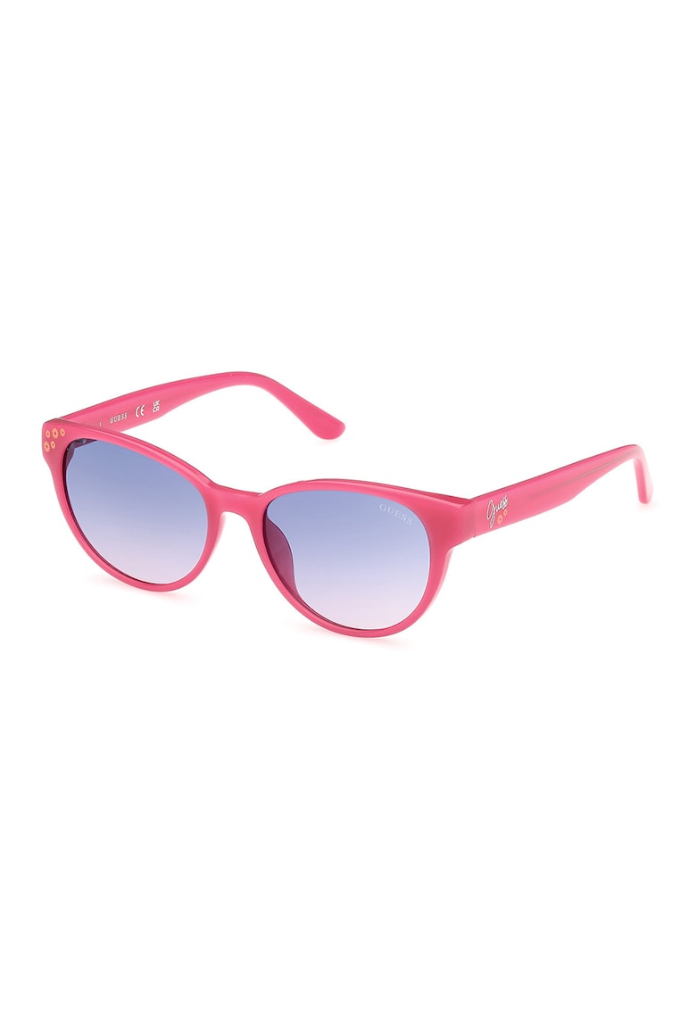 Caracteristici Stil: rotund Culoare: fucsia Culoare lentila: albastru Tip lentila: culoare uniforma Culoare rama: roz Protectie UV: 2 Detalii: a se evita contactul cu alcool