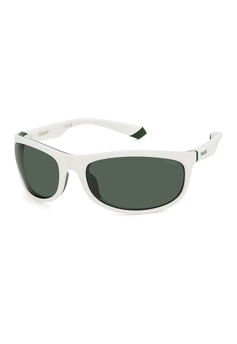 Caracteristici Stil: shield Culoare: alb murdar Culoare lentila: gri Tip lentila: polarizata