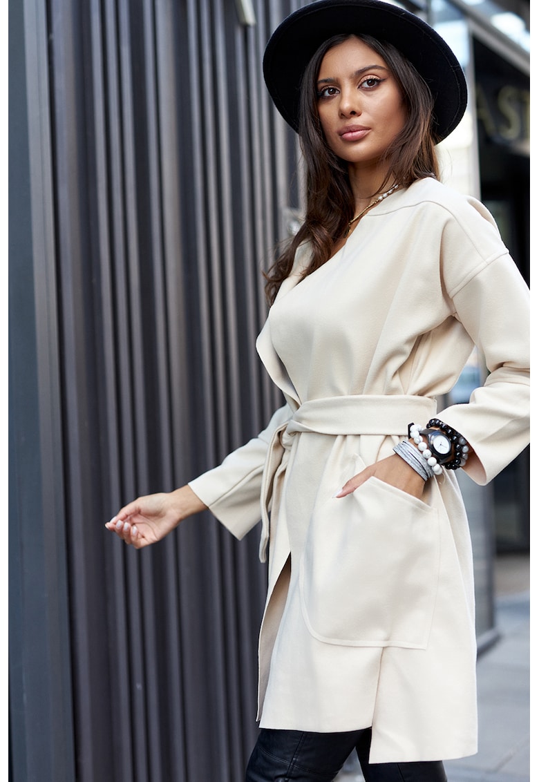 Caracteristici Tip produs: palton Culoare: alb fildes Imprimeu: uni Stil: casual Material: poliester Croiala: regular fit Guler: cu revere Maneci: cazute Lungime maneca: maneca lunga Buzunare: 2 aplicate Sistem inchidere: cordon Compozitie Exterior: 100% poliester
