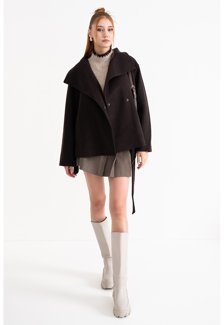 Caracteristici Tip produs: palton Culoare: maro inchis Imprimeu: uni Stil: casual Material: poliester