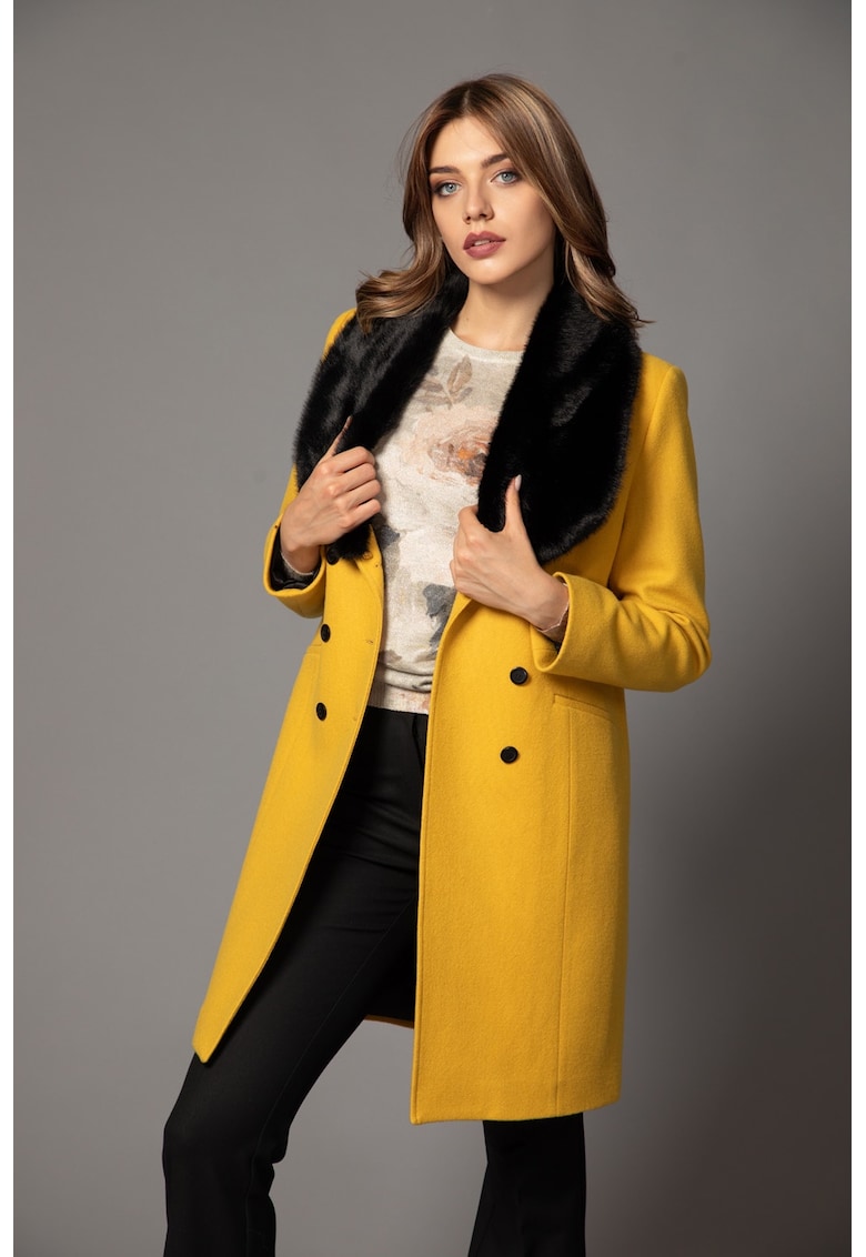 Caracteristici Tip produs: palton Culoare: galben Imprimeu: uni Stil: elegant Material: lana Croiala: regular fit Lungime maneca: maneca lunga Buzunare: 2 laterale Sistem inchidere: nasturi Compozitie Exterior: 100% lana virgina Captuseala: 100% polyester