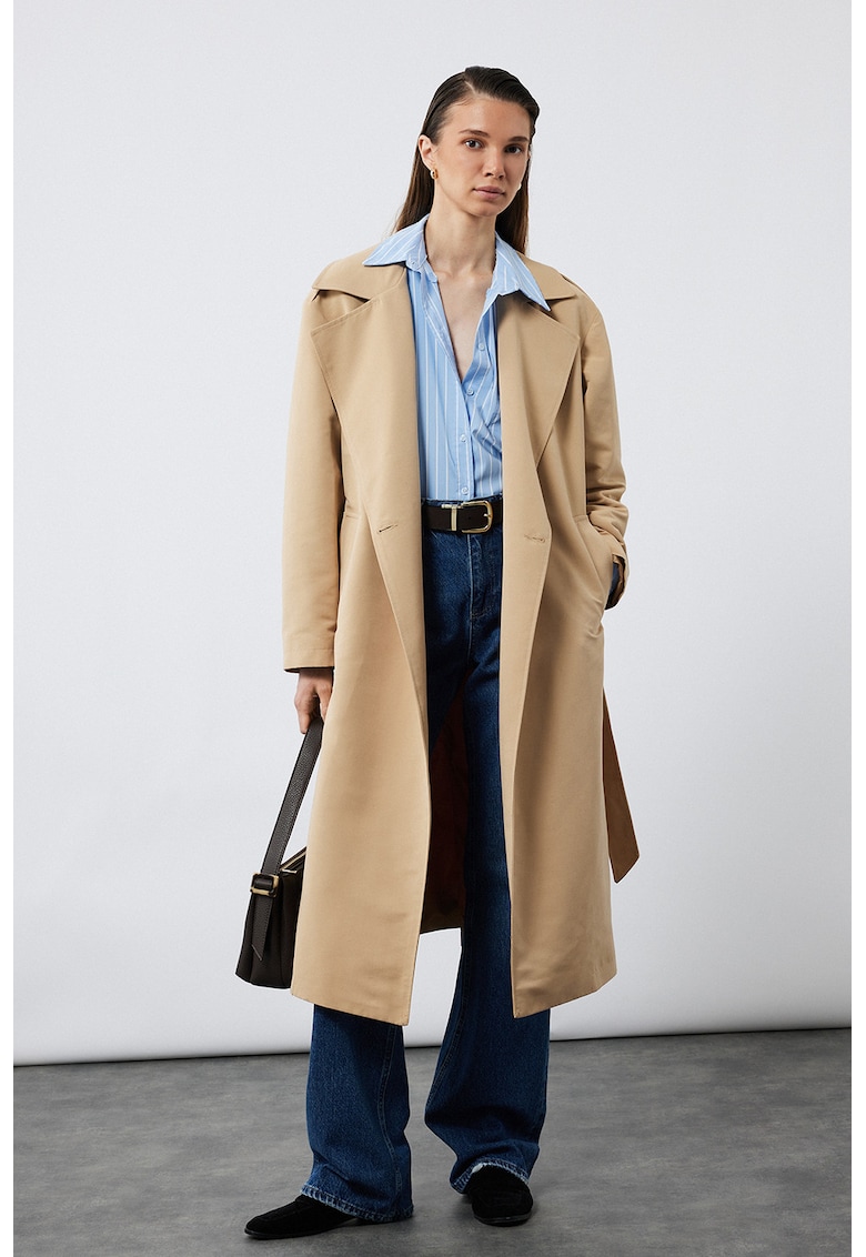 Caracteristici Tip produs: palton Culoare: bej Imprimeu: uni Stil: casual Material: poliester Croiala: supradimensionat Lungime maneca: maneca lunga Buzunare: 2 oblice laterale Sistem inchidere: nasturi