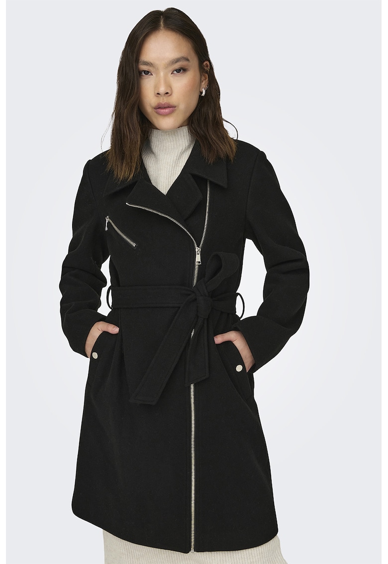 Caracteristici Tip produs: palton Culoare: negru Imprimeu: uni Stil: casual Material: sintetic Croiala: regular fit Guler: cu revere Lungime maneca: maneca lunga Buzunare: unul cu fermoar