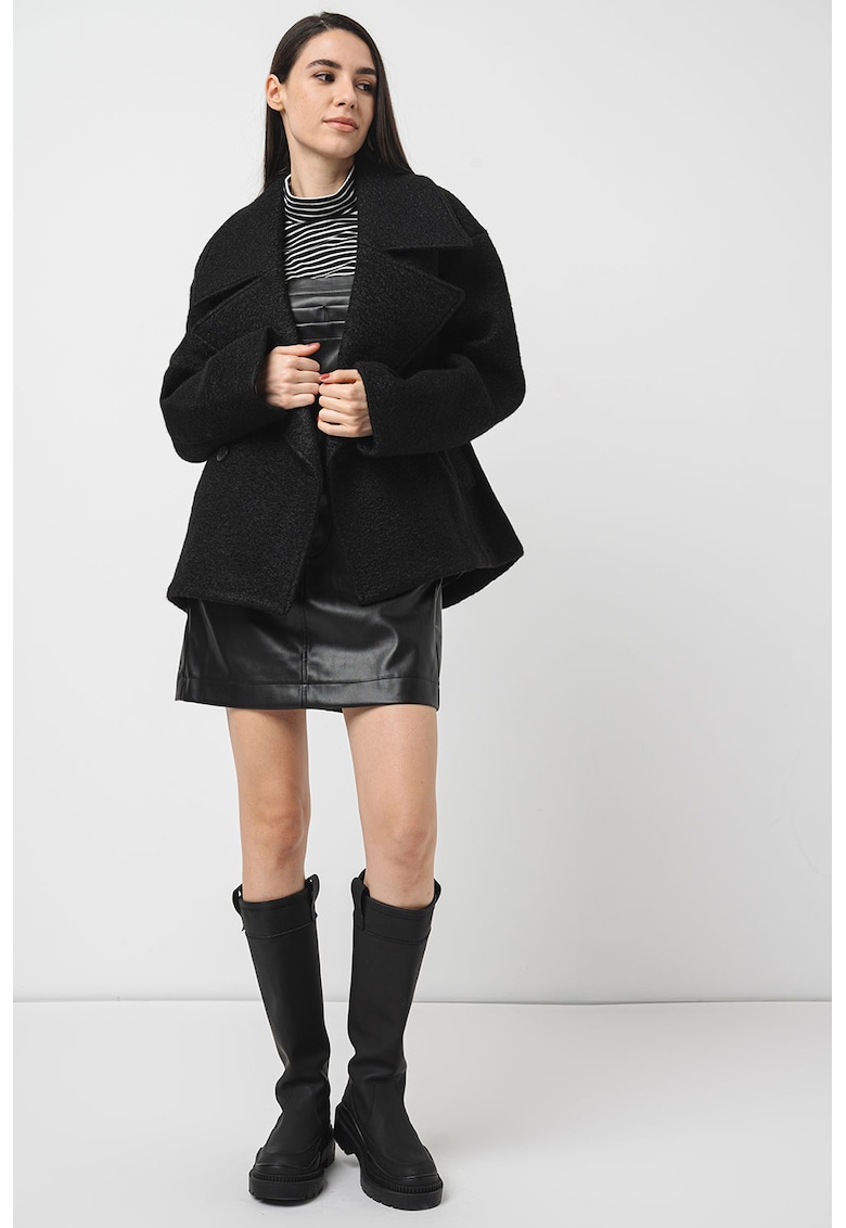 Caracteristici Tip produs: palton Culoare: negru Imprimeu: uni Stil: casual Material: poliester Croiala: supradimensionat Guler: cu revere Maneci: cazute Lungime maneca: maneca lunga Sistem inchidere: nasturi Compozitie Exterior: 100% poliester Captuseala: 100% poliester Info model Modelul poarta un produs de marimea S. Marimi model: 177 cm inaltime