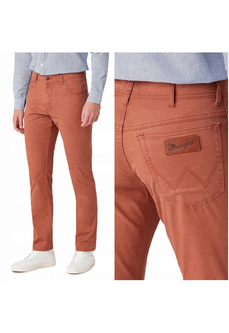 Caracteristici Culoare: portocaliu Imprimeu: uni Material: bumbac Stil: casual Croiala: slim fit Talie: joasa Buzunare: 5 Lungime: lungi Detalii: 98% bumbac 2% elastan Sistem inchidere: fermoar Linie Brand: wrangler Compozitie Exterior: 98% bumbac