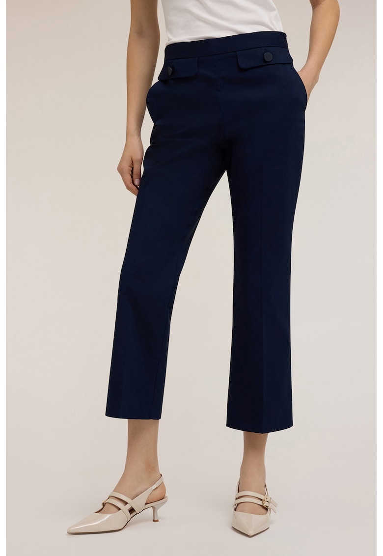 - bumbac Imprimeu: uni Croiala: dreapta Lungime: capri Talie: inalta Buzunare: 2 laterale Sistem inchidere: fermoar Compozitie Exterior: 61% bumbac