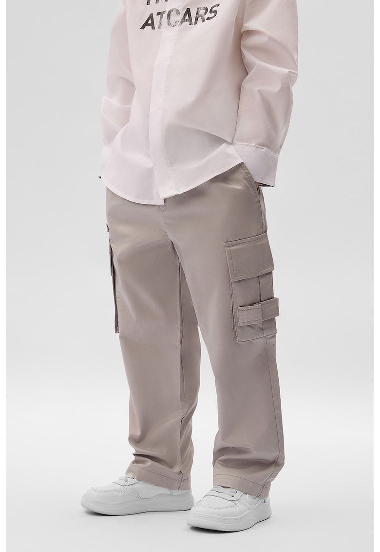 Caracteristici Tip produs: pantaloni lungi Culoare: gri deschis Material: bumbac Stil: casual Imprimeu: logo Croiala: croiala ampla Talie: medie Buzunare: laterale