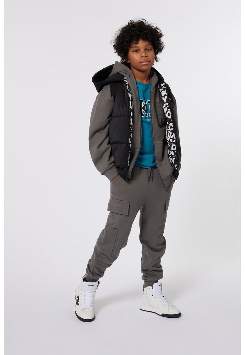 Caracteristici Tip produs: pantaloni lungi Culoare: gri inchis Material: bumbac Stil: casual Imprimeu: uni Croiala: conica Talie: medie Buzunare: multiple Detalii: snur elastic in talie