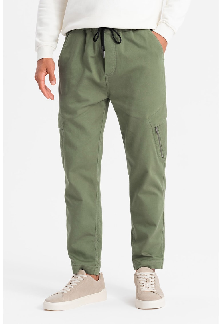 Caracteristici Culoare: verde feriga Imprimeu: uni Material: bumbac Stil: casual Croiala: regular fit Talie: medie Buzunare: 4 Lungime: lungi Detalii: snur pentru ajustare Sistem inchidere: fara inchidere Compozitie Exterior: 97% bumbac