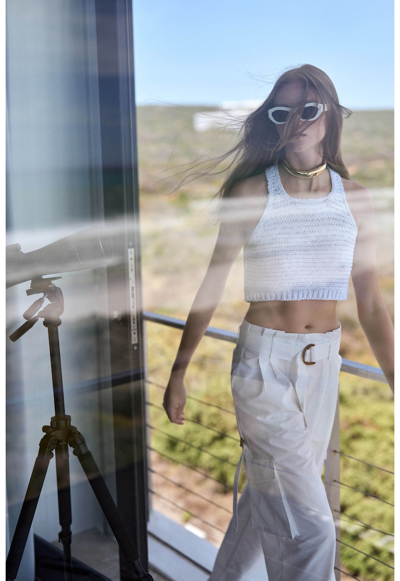 Caracteristici Culoare: alb Stil: casual Material: bumbac Imprimeu: uni Croiala: croiala ampla Lungime: lungi Talie: inalta Detalii: curea in talie Buzunare: in cusaturile laterale