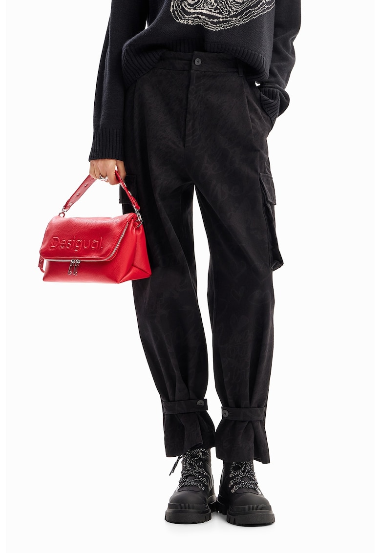 Caracteristici Culoare: negru Stil: casual Material: bumbac Imprimeu: abstract Croiala: dreapta Lungime: lungi Talie: inalta Detalii: terminatii reglabile Buzunare: 2 cu clapa