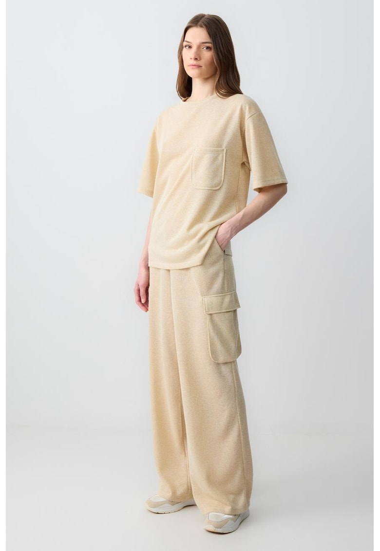 - viscoza Imprimeu: uni Croiala: croiala ampla Lungime: lungi Talie: inalta Buzunare: 4 buzunare Sistem inchidere: fara inchidere Compozitie Exterior: 55% poliester