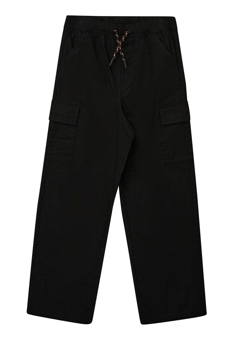 Caracteristici Tip produs: pantaloni lungi Culoare: negru Material: bumbac Stil: casual Imprimeu: uni Croiala: dreapta Buzunare: cu clapa Sistem inchidere: fara inchidere Colectie: primavara