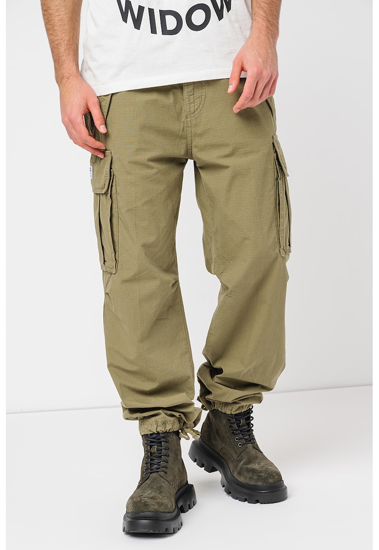 Caracteristici Culoare: verde masliniu Imprimeu: uni Material: bumbac Stil: casual Croiala: relaxed fit Talie: medie Buzunare: laterale Lungime: lungi Sistem inchidere: fara inchidere Compozitie Exterior: 100% bumbac Info model Modelul poarta un produs de marimea M. Marimi model: 184 cm inaltime