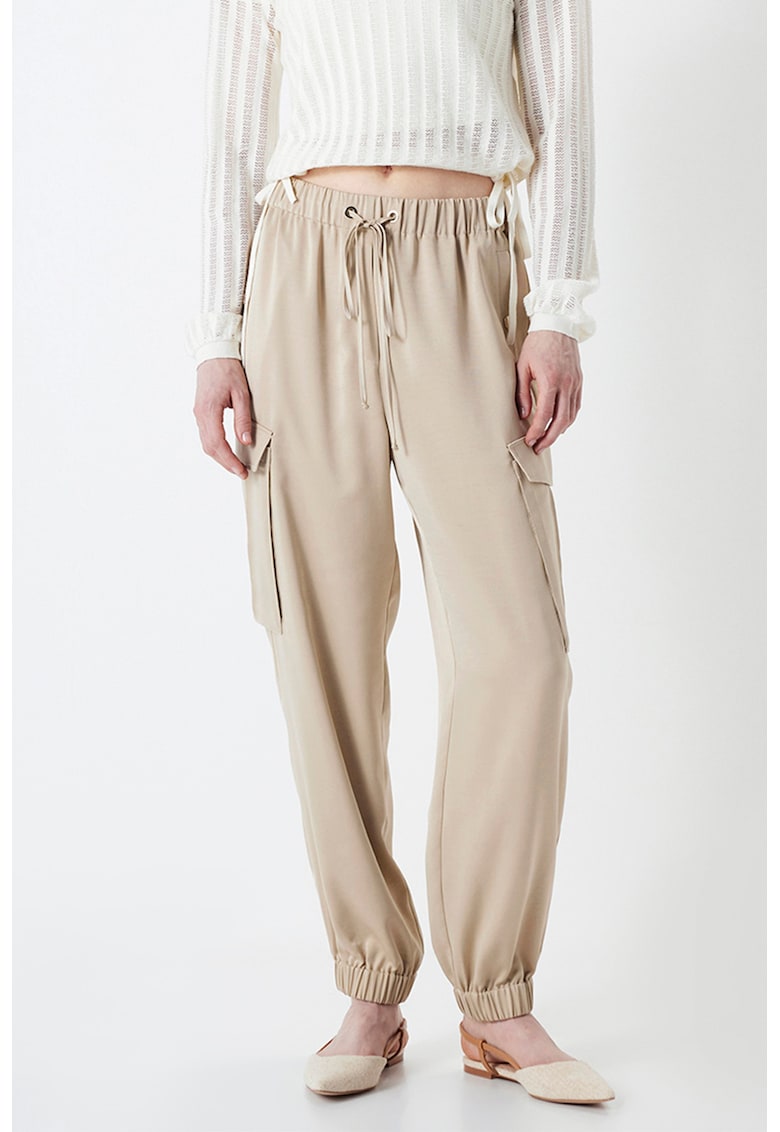 Caracteristici Culoare: bej deschis Stil: casual Material: sintetic Imprimeu: uni Croiala: conica Lungime: lungi Talie: medie Detalii: snur pentru ajustare si insertie elastica in talie Buzunare: multiple Sistem inchidere: fara inchidere Compozitie Exterior: 100% poliester
