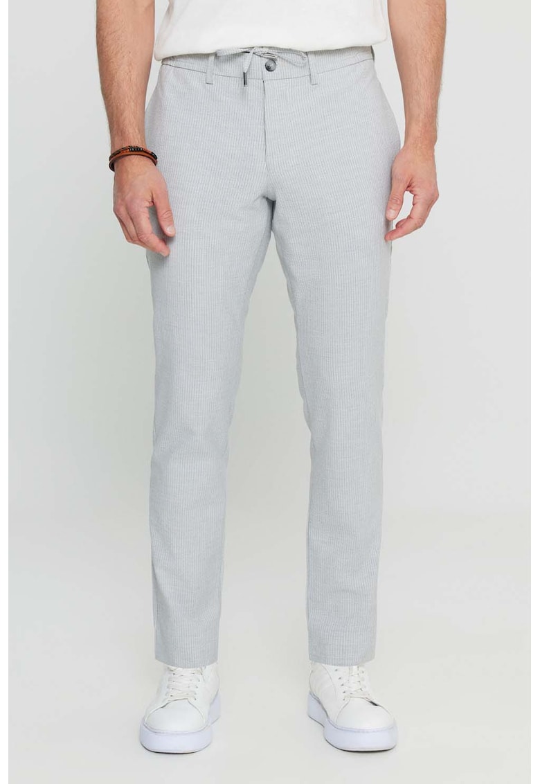 Caracteristici Culoare: gri deschis Imprimeu: dungi Material: bumbac Stil: casual Croiala: regular fit Talie: medie Buzunare: cu refilet pe partea din spate