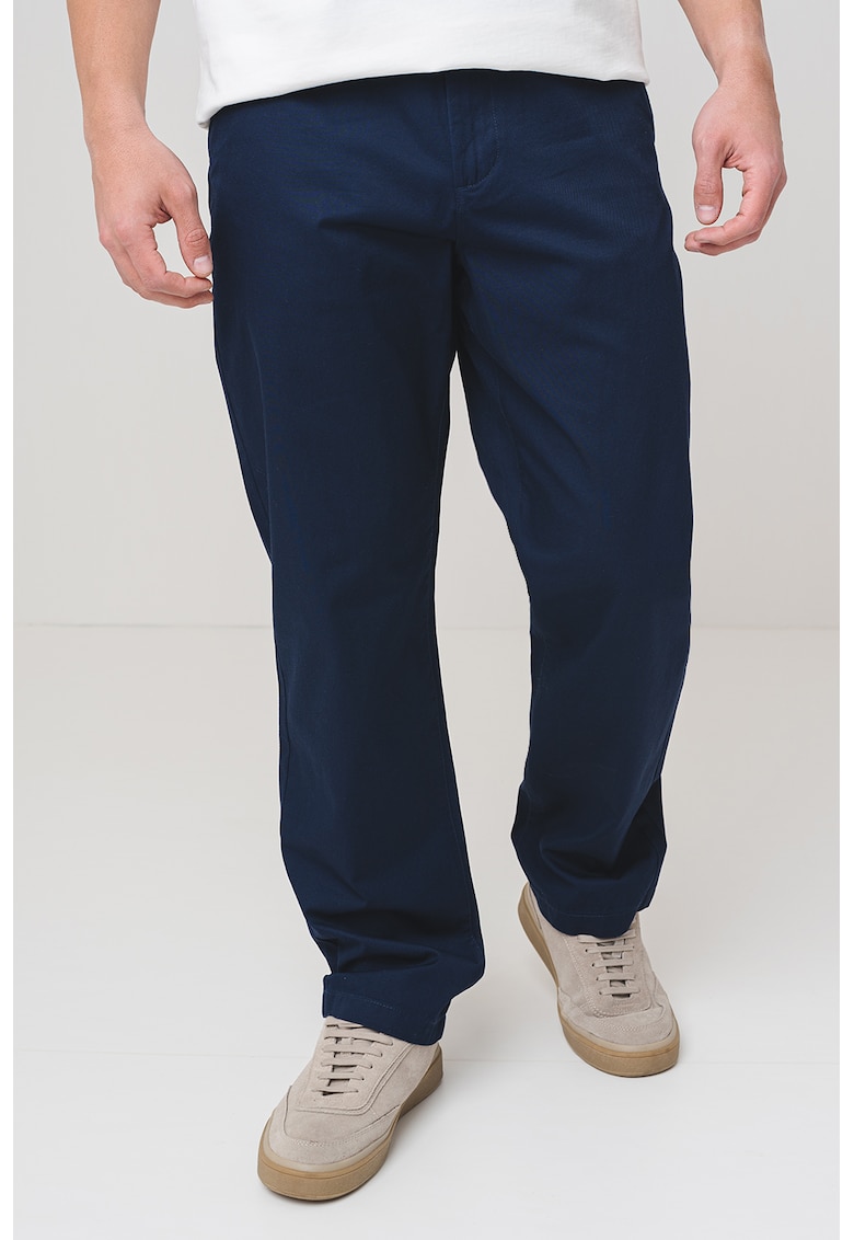 Caracteristici Culoare: albastru ultramarin Imprimeu: uni Material: bumbac Stil: casual Croiala: dreapta Talie: inalta Lungime: lungi Sistem inchidere: fermoar Compozitie Exterior: 100% bumbac Info model Modelul poarta un produs de marimea W32-L32. Marimi model: 179 cm inaltime