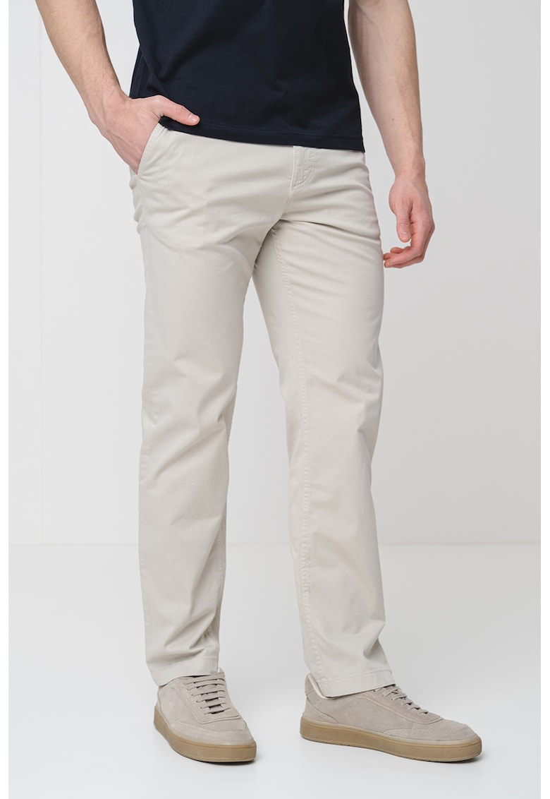 Caracteristici Culoare: alb fildes Imprimeu: uni Material: bumbac Stil: casual Croiala: regular fit Talie: medie Buzunare: in cusaturile laterale Lungime: lungi Sistem inchidere: fermoar Compozitie Exterior: 97% bumbac