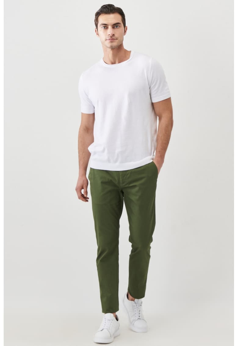 Caracteristici Culoare: kaki Imprimeu: uni Material: bumbac Stil: casual Croiala: slim fit Talie: medie Buzunare: cu refilet si nasture pe partea din spate