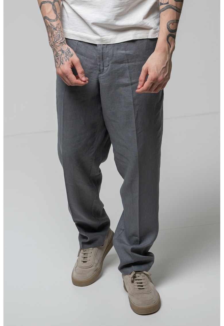 Caracteristici Culoare: gri inchis Imprimeu: uni Material: in Stil: casual Croiala: regular fit Talie: medie Buzunare: cu refilet si nasture pe partea din spate
