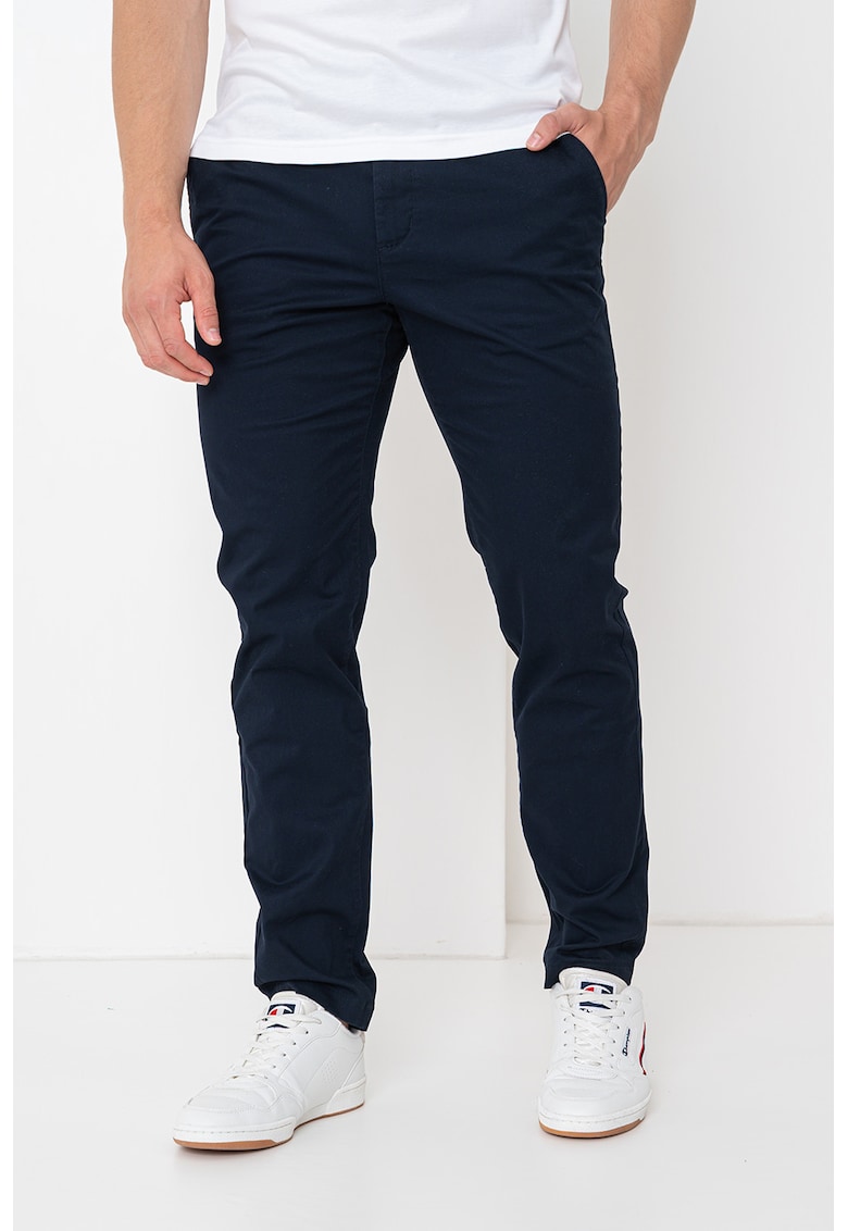 Caracteristici Culoare: bleumarin Imprimeu: uni Material: bumbac Stil: casual Croiala: conica Talie: medie Lungime: lungi Sistem inchidere: fermoar