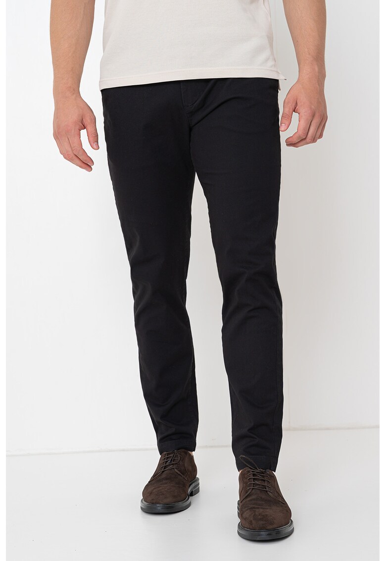 Caracteristici Culoare: negru Imprimeu: uni Material: bumbac Stil: casual Croiala: conica Talie: medie Lungime: lungi Sistem inchidere: fermoar