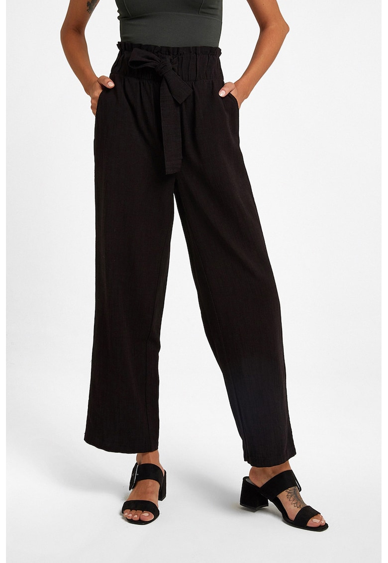 - viscoza Imprimeu: uni Croiala: relaxed fit Lungime: crop Talie: inalta Detalii: cordon in talie Buzunare: buzunare laterale Sistem inchidere: fara inchidere Compozitie Exterior: 70% viscoza