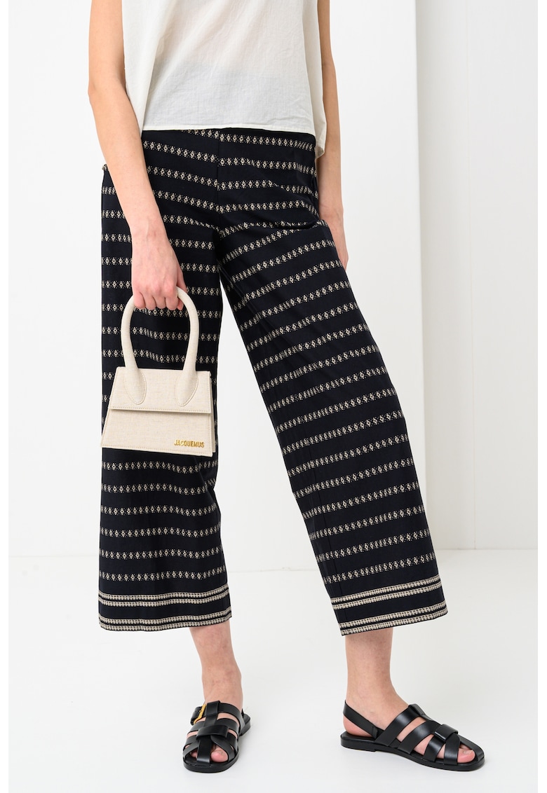 - camel Stil: casual Material: bumbac organic Imprimeu: tribal Croiala: croiala ampla Lungime: crop Talie: inalta Sistem inchidere: fara inchidere Compozitie Exterior: 100% bumbac organic Info model Modelul poarta un produs de marimea S/36 EU. Marimi model: 181 cm inaltime