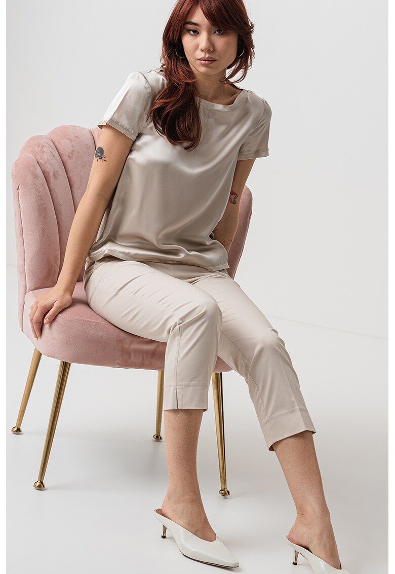 - elastan Imprimeu: uni Croiala: regular fit Lungime: crop Talie: medie Buzunare: 2 oblice laterale Compozitie Exterior: 98% bumbac